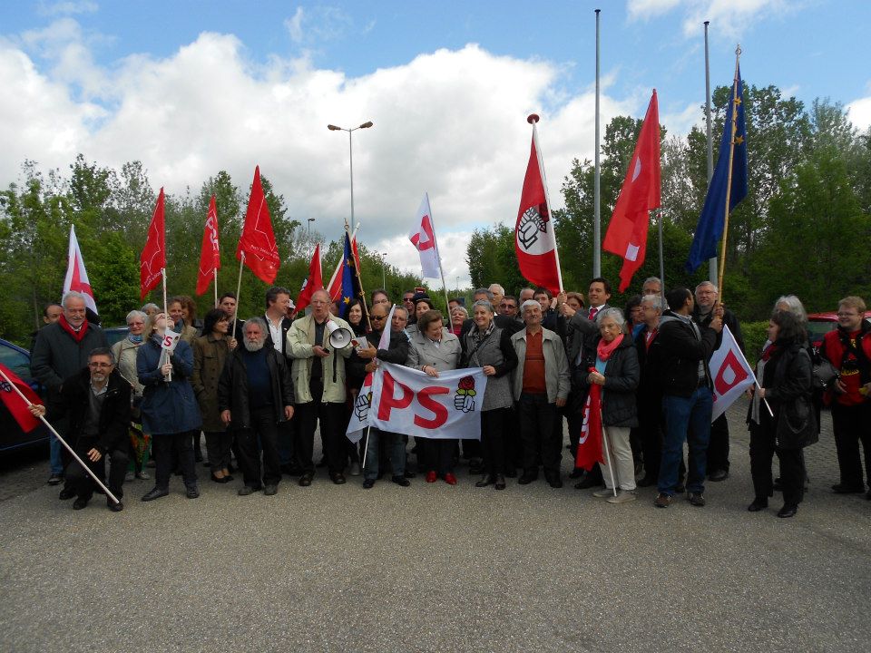 Die Kundgebung wurde mit einem geselligen Zusammensein und einem lebhaften politischen Dialog in einer Gaststätte in Markolsheim fortgesetzt.Hier wurde vereinbart solche Treffen der Schwesterparteien SPD und PS vom Südlichen Oberrhein regelmäßig durchzuführen und Fragen des regionalen oberrheinischen Arbeitsmarkts und die Fessenheimfrage auf die Tagesordnung zu setzen.