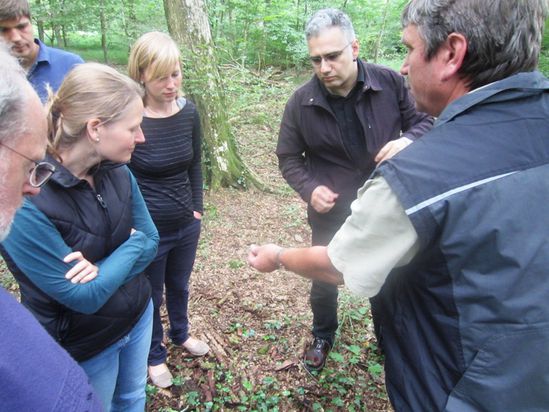 „Im Wassermer Wald gibt es vieles, was man entdecken kann“, sagte Horst Lapschansky und lud die Teilnehmer zu einer Entdeckungs-Tour ein. Vom „Drei-Länder-Eck“ zwischen Denzlingen, Reute und Wasser-Emmendingen ging die Führung an der ehemaligen Grenze zwischen Vorderösterreich und Baden entlang, vorbei an einer der seltenen Flatterulmen, deren widerstandsfähiges Holz in früheren Zeiten vor allem für Windmühlenflügel verwendet wurde, bis zu einem Baumstamm mit Spechtringeln, den Horst Lapschansky seinerzeit vor dem Verbrennen gerettet hatte.