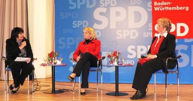 In einem anshließenden "Dreier- Talk" erzählen Hannelore Kraft und Sabine Wölfle auf Frage von Marianne Wonnay wie sie zur SPD gekommen sind. Hintergrundinformationen, die deutlich machen: Beide Politikerinnen engagieren sich für Themen, arbeiten für die Verbesserung der Verhältnisse, und das schon seit langem!